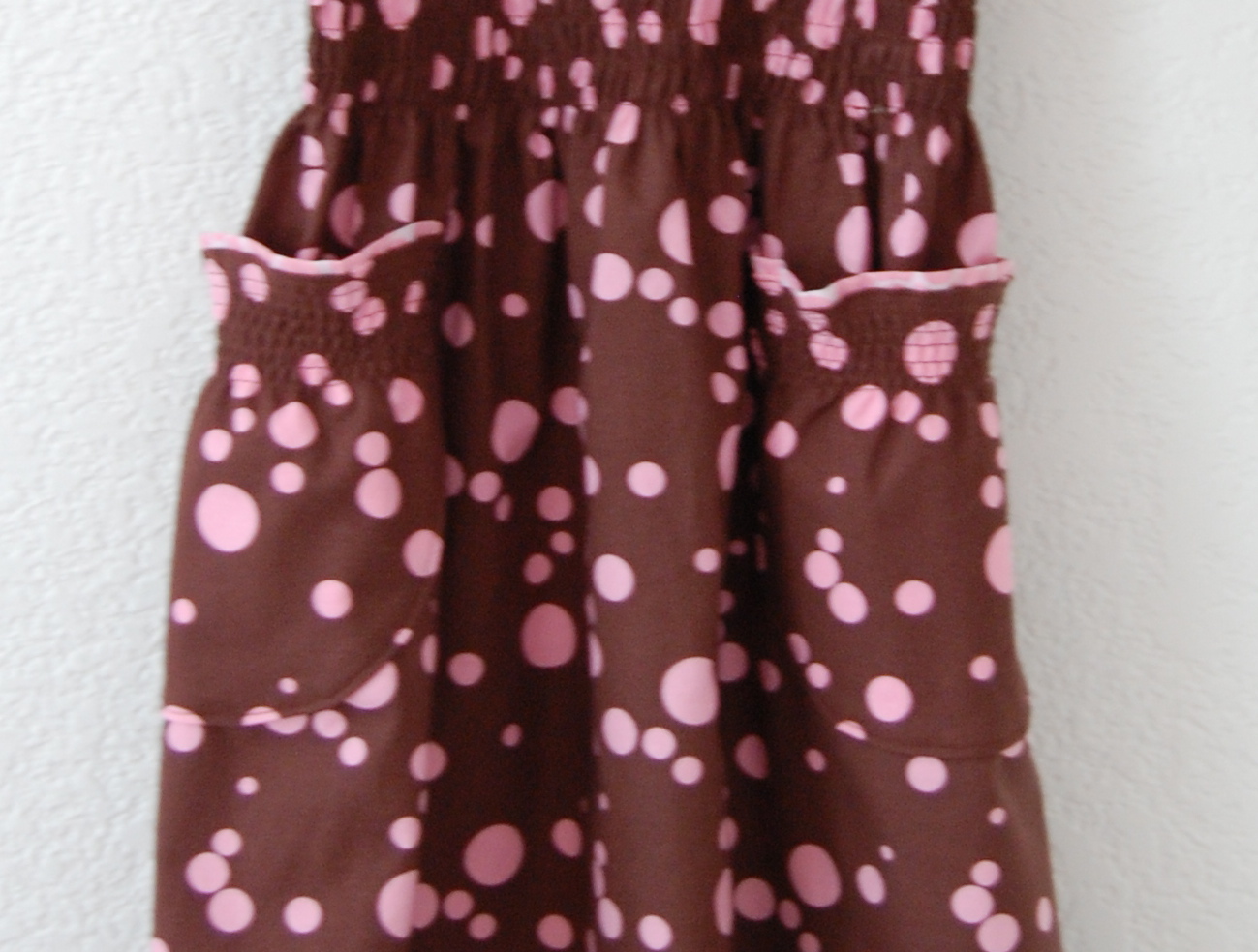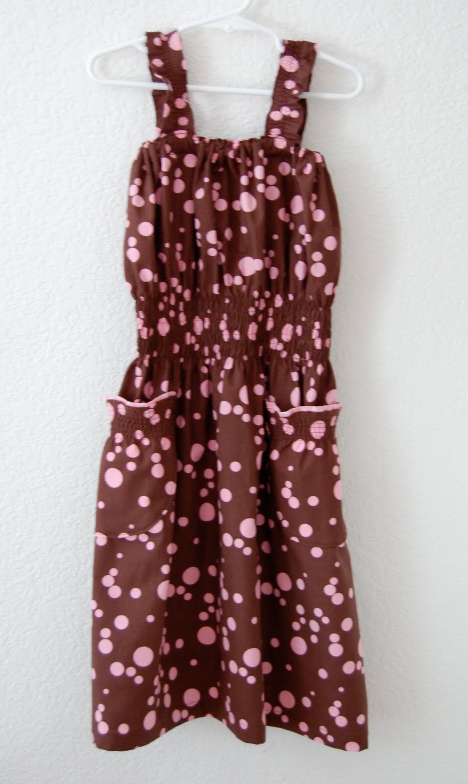 The hanger just doesn't do it justice - it is so cute on! It's a combination of patterns - Made's Summer Vacation Dress and the free Leisurely dress pattern form the Sew Mama Sew blog. Last summer I got hooked on shirring (using elastic thread to create a smocking effect) and this year it's becoming an obsession. I just bought four spools of elastic thread, so no fabric here is safe! The shirring on the pockets was from Dana's pattern, and I love it!